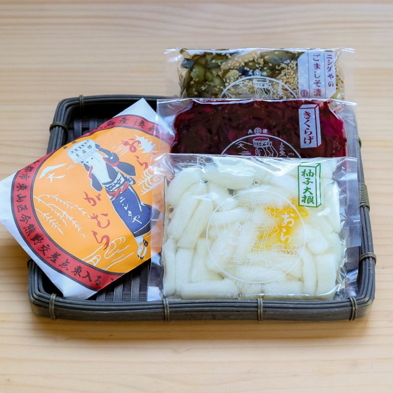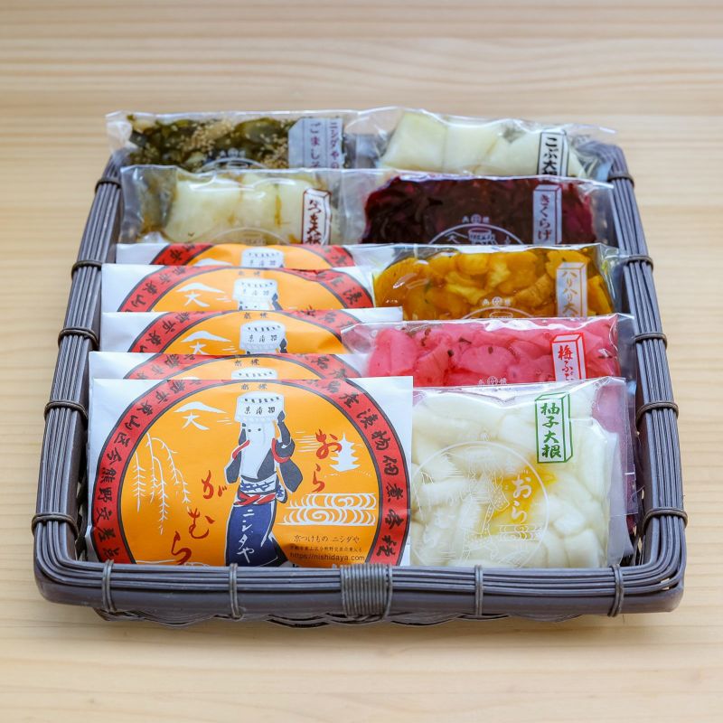 京つけものニシダやは、京都市東山区にある漬物店です。創業84年で、常時40~50種類の漬物を販売しています。人気商品は、キュウリやナス、ミョウガなどをシソで漬けた「おらがむら漬」です。
