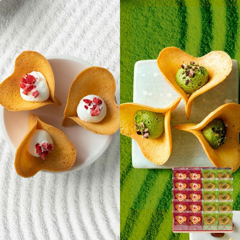 抹茶には、ほろ苦い宇治抹茶クリームと甘く香ばしいラングドシャ。