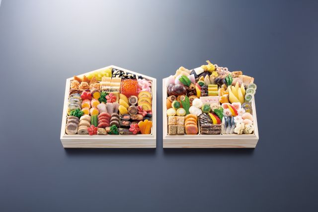 • 五味五色五法: 五味(甘味、酸味、塩味、苦味、うま味)、五色(白、黒、黄、赤、緑)、五法(生、煮る、焼く、揚げる、蒸す)をバランス良く取り入れることで、見た目も美しく、栄養バランスにも優れたおせちに仕上げています。